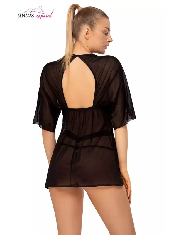 Vous serez irrésistible dans ce déshabillé à manches courtes en tulle noir.